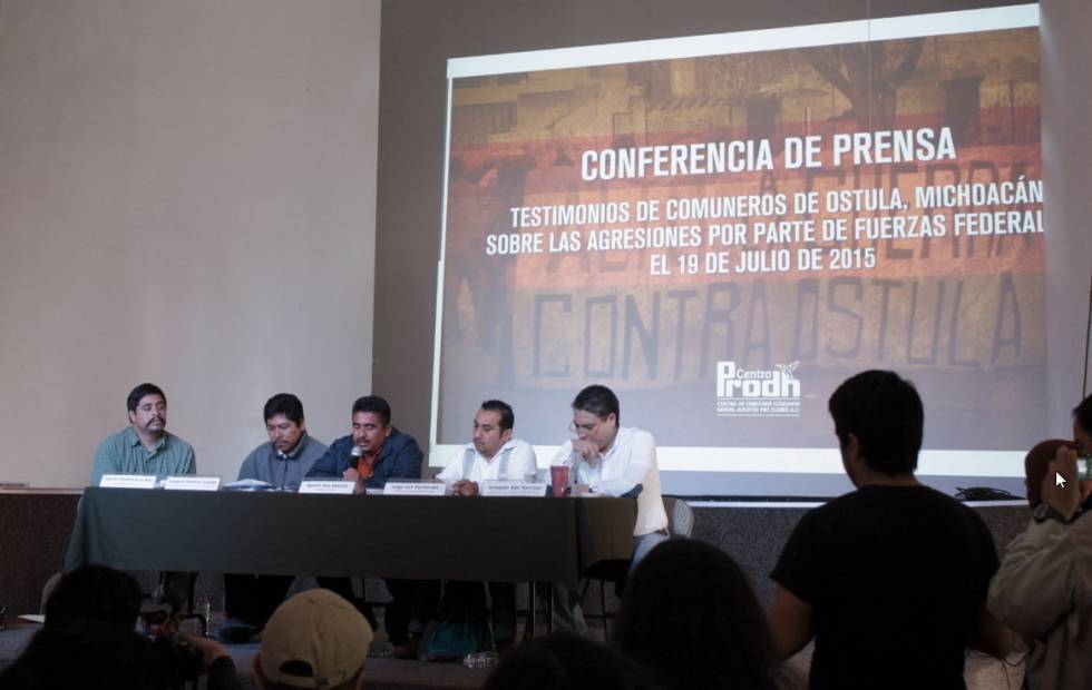 Ciudad de México, 21 de julio de 2015. Los elementos del ejército que dispararon este domingo contra habitantes de la comunidad nahua de Ostula, Michoacán, asesinando a un niño e hiriendo a cinco personas más, no fueron provocados por los comuneros. “Ellos mismos actuaron de manera arbitraria”, confirmó hoy en conferencia de prensa Agustín Vera, vocero y Jefe de Tenencia del lugar.