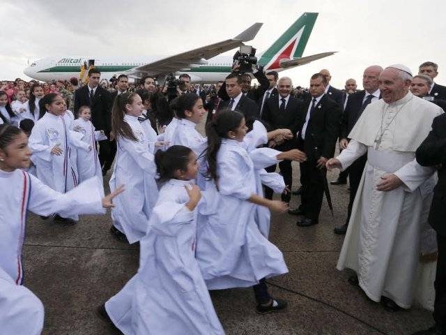 Luego de una emotiva despedida de Bolivia –penúltimo paÃs de su gira sudamericana– Francisco arribó en el avión de Alitalia y se dirigió al Aeropuerto Internacional Silvio Pettirossi, al que llegó minutos antes de las 15.00