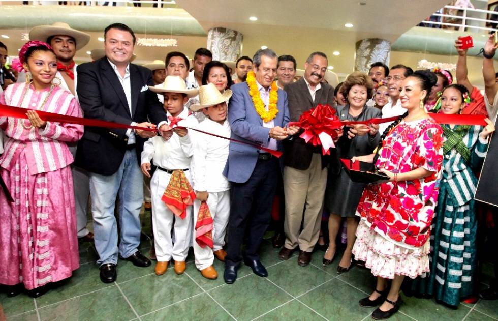 El gobernador Rogelio Ortega MartÃnez durante el recorrido por la exposición y venta de artesanÃas y productos de todo el estado, como parte de la Gala de las Ocho Regiones en el Auditorio Sentimientos de la Nación, acompañado del secretario de Cultura, Arturo MartÃnez Núñez y la presidenta del DIF Guerrero, Marxitania Ortega.
