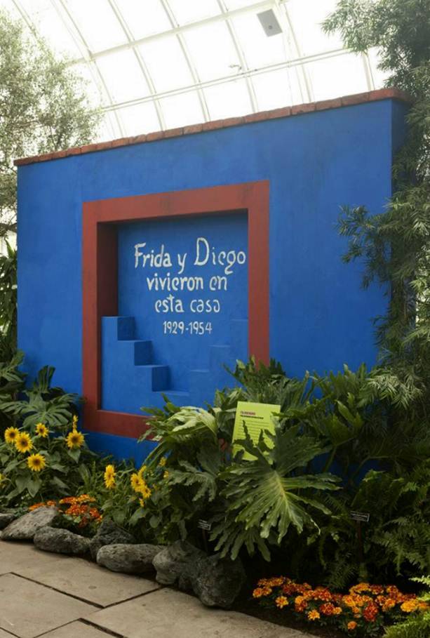 AsÃ, la muestra del jardÃn botánico, en el condado neoyorquino de El Bronx, cuenta, entre otros objetos relacionados con el mundo vegetal, con una réplica exacta de las herramientas de pintura que utilizaba en exterior y una versión a escala de la pirámide de la Casa Azul, creada originalmente para exhibir el arte prehispánico de Diego Rivera.
