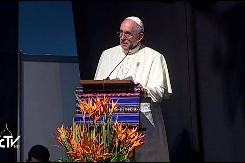 Francisco afirmó que las múltiples exclusiones e injusticias destructoras que se viven en el mundo –campesinos sin tierra, familias sin techo, trabajadores sin derechos, personas heridas en su dignidad- “responden a un sistema que se ha hecho global”.