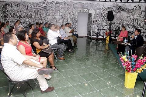 Chilpancingo, Guerrero, 11 de agosto.- Durante el ciclo de conferencias sobre la Vida y Obra de Vicente Guerrero, que se lleva a cabo en el vestíbulo del Auditorio Estatal Sentimientos de la Nación, este martes participó la maestra María Teresa Pavía Miller, con el tema El nombre de Vicente Guerrero: Crónica de un error.