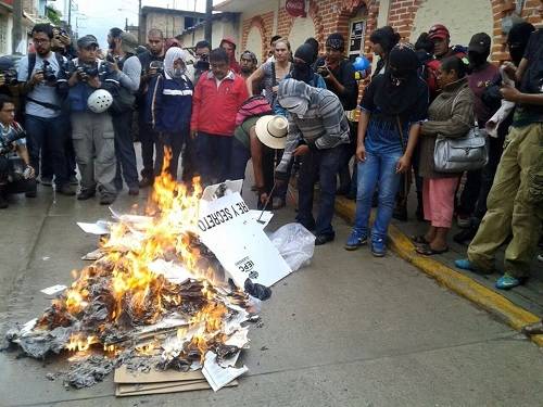 A pesar de que miles de elementos de seguridad se encuentran en Guerrero en un operativo de seguridad por las elecciones, cetegistas, padres de los 43 normalistas de Ayotzinapa desaparecidos e integrantes del Movimiento Popular de Guerrero, queman 14 casillas electorales en el municipio de Tixtla, esto significa el 20 por ciento del total, por lo que se cancelan las elecciones para presidente municipal, informo Marisela Reyes Reyes presidenta del Instituto Electoral de Participación Ciudadana de Guerrero.