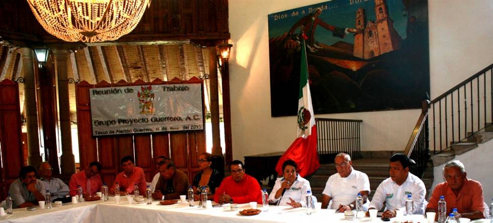 TAXCO DE ALARCÓN, Gro. 16 de mayo de 2015.-La candidata a diputada por el 21 distrito electoral local con cabecera en esta ciudad colonial por el Partido Revolucionario Institucional (PRI) y del Partido Verde Ecologista de México (PVEM), Flor Añorve Ocampo, al reunirse el día de hoy con integrantes del Grupo Proyecto Guerrero, que encabeza Cristian Berger Trawuitz, dijo que quiere ser diputada para servir a la gente, pues expresó que cuenta con mas de 30 años de asistencia con experiencia en la gestión y crear leyes que han beneficiado a los guerrerenses, de manera especial a los taxqueños con el programa federal de pueblos mágicos que ella gestionó.