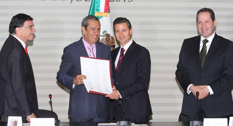 El gobernador de Guerrero, Rogelio Ortega Martínez recibió un reconocimiento por parte de la Conferencia Nacional de Gobernadores durante la XLIX Sesión Ordinaria celebrada en Tlaxcala, por su participación en los diferentes trabajos de la Conago, mismo que le fue entregado por el presidente de la República, Enrique Peña Nieto. Los acompañan los mandatarios de Tlaxcala, Mariano González Zarur y del Estado de México, Eruviel Ávila Villegas.