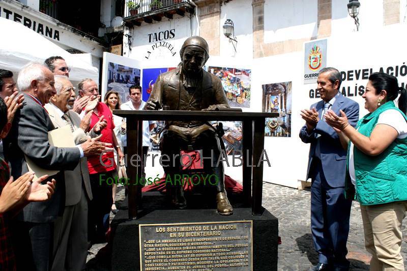 Taxco de Alarcón, Guerrero, 12 de octubre.- Alrededor del mediodÃa de hoy en la plazuela de san Juan, al develar la estatua en homenaje al GeneralÃsimo José MarÃa Morelos y Pavón, y en los que prácticamente serÃa su última visita a esta ciudad como gobernador de Guerrero, Rogelio Ortega MartÃnez, oriundo de este pueblo mágico, aseguró que el compromiso de la administración que encabeza es preservar y difundir el patrimonio cultural e histórico de Guerrero.