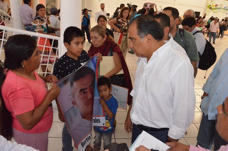 CHILAPA DE ÁLVAREZ- Héctor Astudillo Flores, Gobernador electo, ante la Comisión Ejecutiva de Atención a Víctimas del Gobierno Federal, la Comisión Nacional de Derechos Humanos y familiares que reclaman la presentación de un centenar de desaparecidos en este Municipio de Chilapa, gran parte de ellos de origen indígena, se comprometió a apoyar los casos de desapariciones en Guerrero y proponer un Grupo Especial dentro de la Fiscalía General del Estado para investigar esos casos, durante su Gobierno que iniciará el 27 de octubre próximo.