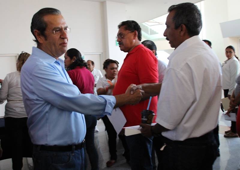 El Ejecutivo estatal visitó las diversas salas en las que se instalaron los equipos para la evaluación y acudió a las mesas de registro para felicitar a los docentes que están interesados en ocupar una plaza de profesor o promoverse a responsabilidades mejor remuneradas.